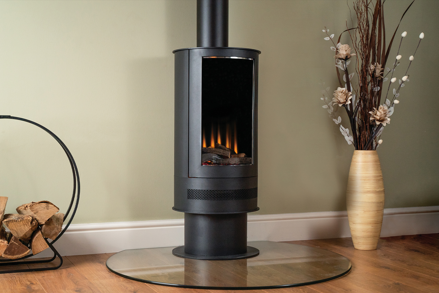 Ashurst Barrel Stove — это премиальная электрическая печь-камин. Модель цилиндрической формы дополняют две декоративные трубы для имитации дымохода. Установить печь максимально просто: достаточно поставить ее рядом с розеткой и подключить к электросети.