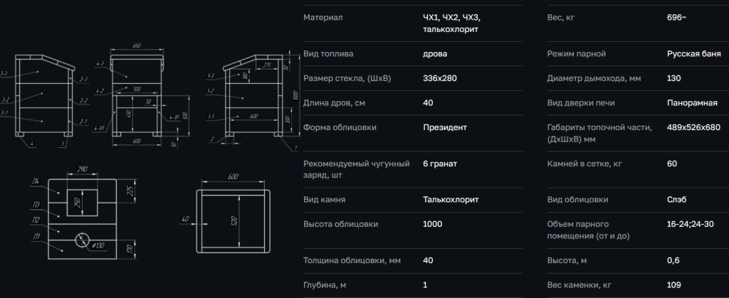 Печь Grom 30 (П2) отличается каменкой новейшей разработки: несмотря на огромную массу, каменка нагревается в 2 раза быстрее любых других моделей печей от завода "Техно Лит" и длительное время поддерживает набранную температуру неизменной. Печи линейки Гром имеют в комплекте чугунный короб для установки на каменку и чугунный стартовый патрубок. Увеличенная масса, толщина боковых стенок 14 мм повышают надежность и теплоаккумулирующую способность, а для быстрого нагрева парной боковые стенки оборудованы конвекционными ребрами не только снаружи, но и на внутренней поверхности.
