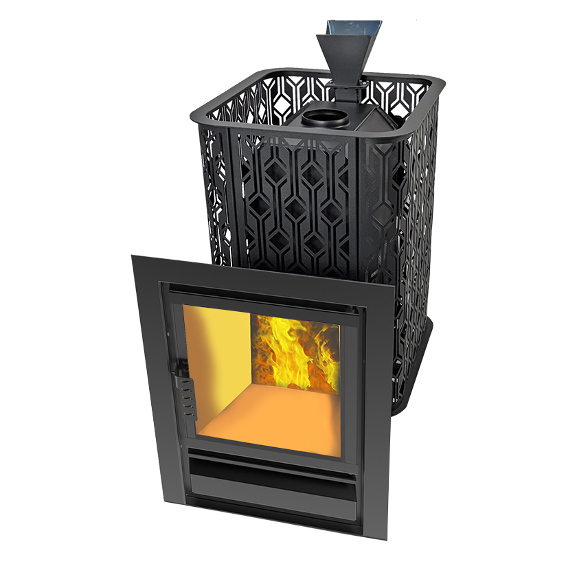Сочетание дизайна, мощи, универсальности и качества. Печь имеет закрытую каменку с воронкой клапаном для поддачи воды на самые раскалённые камни, уложенные в Закрытой каменке! Оригинальная безрамочная дверца с Огромным стеклом подчёркивают стилистику печи!