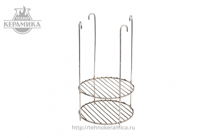 Этажерка двух ярусная диаметром 180 мм прекрасно заменяет шампура и позволяет готовить разнообразные блюда. Она подходит для небольших тандыров, таких как тандыр "Ахмат". С её помощью очень легко и удобно готовить. На ней отлично запекаются овощи, стейки рыбы и мяса, а также тушки птицы. За счет жара от глиняных стенок тандыра, пища получается вкусной, не пригорает, равномерно обжаривается со всех сторон. Используя двух ярусную этажерку можно готовить и запекать блюда в собственном соку, предварительно завернув их в фольгу. Девяти сантиметровое расстояние между ярусами у этажерки позволяет беспрерывно циркулировать горячему воздуху и равномерно запекать пищу между слоями.