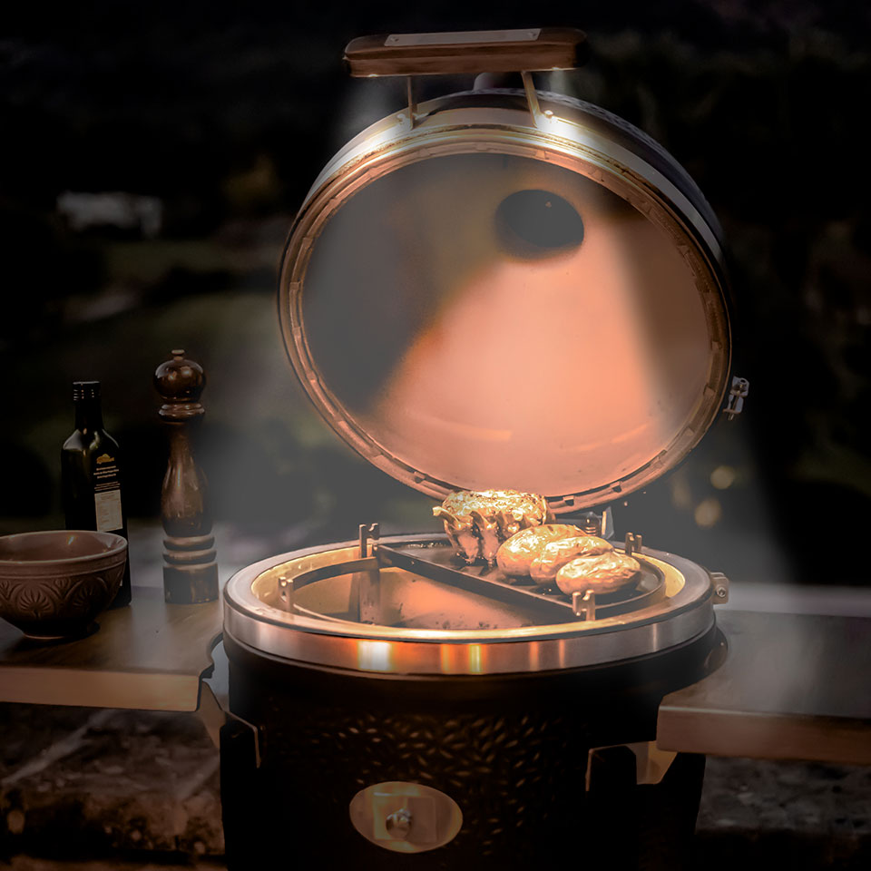 На основе серии Pro 2.0, которая уже установила новые стандарты качества и универсальности, нашей целью было подняться на шаг выше с серией Avantgarde и, прежде всего, объединить уникальную технологию Kamado с современной эстетикой. Avantgarde впечатляет своей сатиново-матовой минеральной глазурью, обновленной особо устойчивой подставкой с колесиками, к которой теперь крепятся новые боковые столики из карбонизированного бамбука - более долговечного и менее подверженному влиянию влаги. Кроме этого, Avantgarde может похвастаться еще более толстой фурнитурой из нержавеющей стали, светодиодной подсветкой, встроенной в ручку, которая освещает всю поверхность гриля в темноте, а также включает в себя все инновации, которые уже были разработаны для Pro Series 2.0.