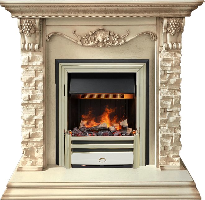 Электрокамин выполнен в золотом цвете. Золото – это материал, который никогда не выйдет из моды, это свидетельство безупречного вкуса и верности традициям. Цвет золота подчёркивает неповторимый стиль и необычность этого камина. К очагу можно подобрать любой портал, который подойдет к вашему интерьеру и станет его лаконичным продолжением. В очаге Dimplex Cavendish применяется эффект «живого» пламени Opti-Myst, в основу которого заложен инновационный принцип имитации огня - в очаге мерцает пламя, практически неотличимое от настоящего. В камине используется муляж дров ручной работы, которые невозможно отличить от настоящих поленьев, а благодаря подсветке создается полная имитация жарко пылающего очага.