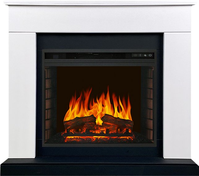 Горение «огня» в очаге сопровождается звуком потрескивания дров, что создает иллюзию настоящего пламени. В роли декоративного топлива выступаю светодиодные дрова, максимально приближенные к реальным. Внутри топка выложена кирпичной кладкой.
