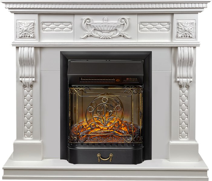 Схожесть с натуральным камином усиливается звуком потрескивающих дров и двухступенчатой системой обогрева. Управлять электрокамином можно с помощью пульта ДУ, который входит в комплект поставки.