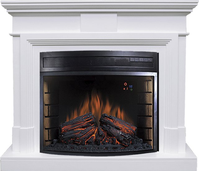 Портал Coventry подходит под электрические камины Royal Flame. В очагах встроена технология имитации реалистичного пламени и звуков потрескивающих дров, а также функция обогрева и регулировки яркости пламени.