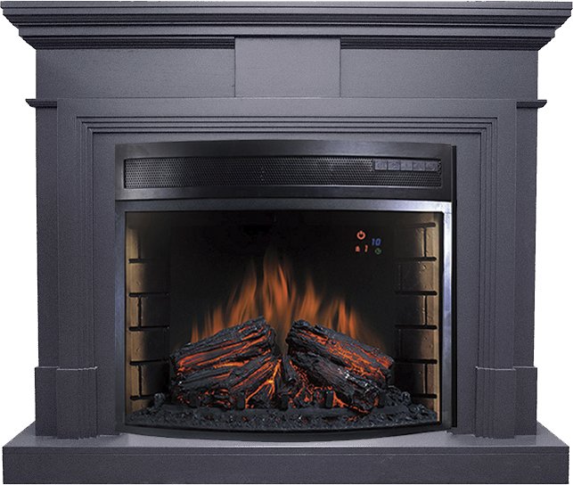 Портал Coventry подходит под электрические камины Royal Flame. В очагах встроена технология имитации реалистичного пламени и звуков потрескивающих дров, а также функция обогрева и регулировки яркости пламени.