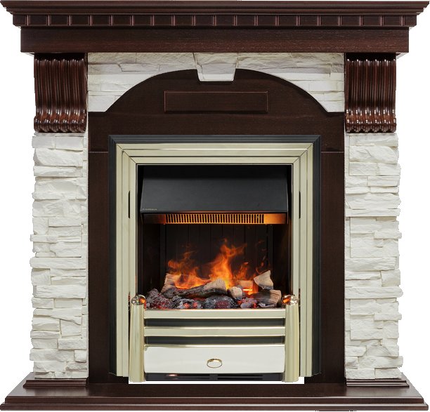 Электрокамин выполнен в золотом цвете. Золото – это материал, который никогда не выйдет из моды, это свидетельство безупречного вкуса и верности традициям. Цвет золота подчёркивает неповторимый стиль и необычность этого камина. К очагу можно подобрать любой портал, который подойдет к вашему интерьеру и станет его лаконичным продолжением. В очаге Dimplex Cavendish применяется эффект «живого» пламени Opti-Myst, в основу которого заложен инновационный принцип имитации огня - в очаге мерцает пламя, практически неотличимое от настоящего. В камине используется муляж дров ручной работы, которые невозможно отличить от настоящих поленьев, а благодаря подсветке создается полная имитация жарко пылающего очага.