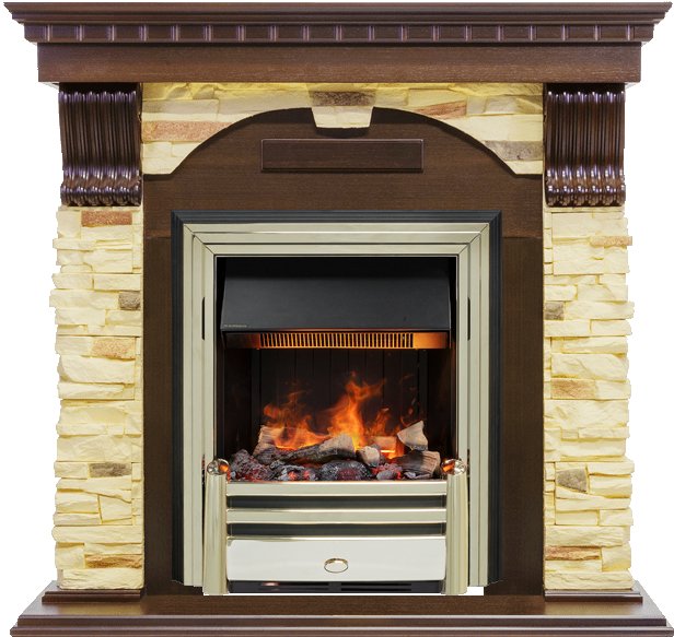 Электрокамин выполнен в золотом цвете. Золото – это материал, который никогда не выйдет из моды, это свидетельство безупречного вкуса и верности традициям. Цвет золота подчёркивает неповторимый стиль и необычность этого камина. К очагу можно подобрать любой портал, который подойдет к вашему интерьеру и станет его лаконичным продолжением. В очаге Dimplex Cavendish применяется эффект «живого» пламени Opti-Myst, в основу которого заложен инновационный принцип имитации огня - в очаге мерцает пламя, практически неотличимое от настоящего. В камине используется муляж дров ручной работы, которые невозможно отличить от настоящих поленьев, а благодаря подсветке создается полная имитация жарко пылающего очага.