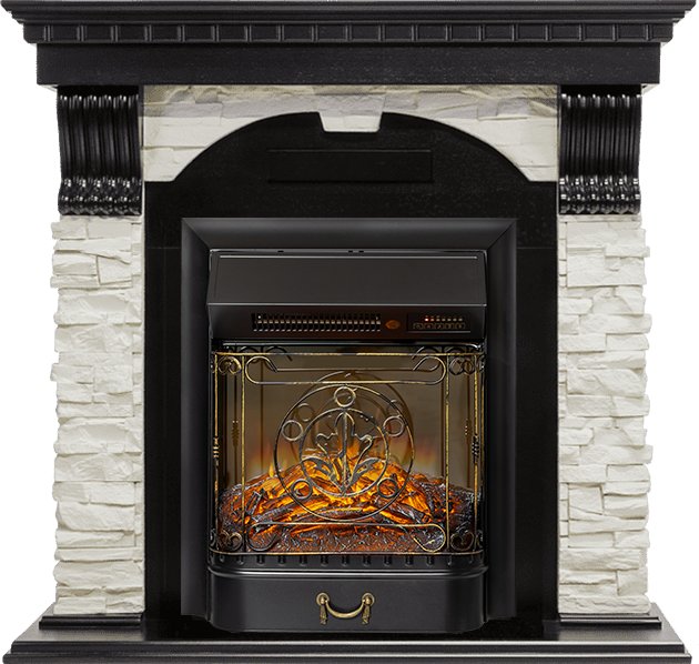 Схожесть с натуральным камином усиливается звуком потрескивающих дров и двухступенчатой системой обогрева. Управлять электрокамином можно с помощью пульта ДУ, который входит в комплект поставки.