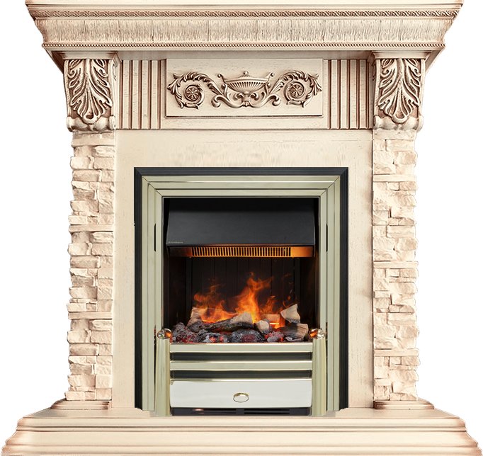Электрокамин выполнен в золотом цвете. Золото – это материал, который никогда не выйдет из моды, это свидетельство безупречного вкуса и верности традициям. Цвет золота подчёркивает неповторимый стиль и необычность этого камина. К очагу можно подобрать любой портал, который подойдет к вашему интерьеру и станет его лаконичным продолжением. В очаге Dimplex Cavendish применяется эффект «живого» пламени Opti-Myst, в основу которого заложен инновационный принцип имитации огня - в очаге мерцает пламя, практически неотличимое от настоящего. В камине используется муляж дров ручной работы, которые невозможно отличить от настоящих поленьев, а благодаря подсветке создается полная имитация жарко пылающего очага.