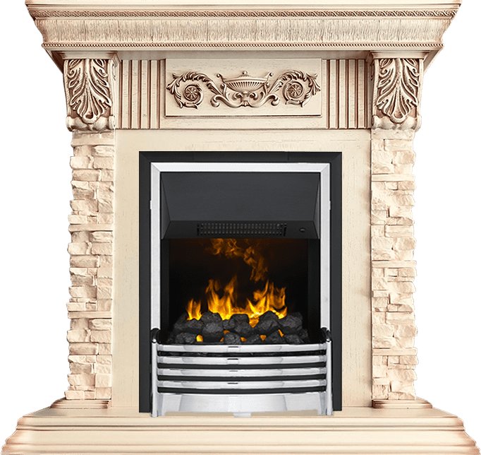 3D-эффект реалистичного пламени достигается при помощи парогенератора и светодиодных ламп, что обеспечивает ощущение настоящего огня, пляшущего среди тлеющих углей.