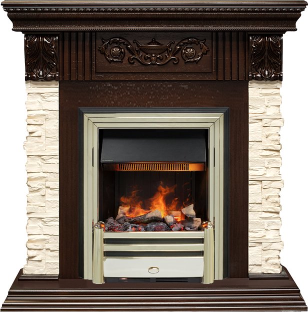 Электрокамин выполнен в золотом цвете. Золото – это материал, который никогда не выйдет из моды, это свидетельство безупречного вкуса и верности традициям. Цвет золота подчёркивает неповторимый стиль и необычность этого камина. К очагу можно подобрать любой портал, который подойдет к вашему интерьеру и станет его лаконичным продолжением. В очаге Dimplex Cavendish применяется эффект «живого» пламени Opti-Myst, в основу которого заложен инновационный принцип имитации огня - в очаге мерцает пламя, практически неотличимое от настоящего. В камине используется муляж дров ручной работы, которые невозможно отличить от настоящих поленьев, а благодаря подсветке создается полная имитация жарко пылающего очага.