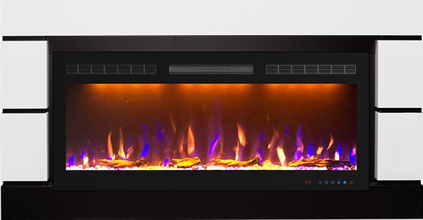 Управление настройками каминов может осуществлять с сенсорной панели, расположенной на фронтальной поверхности экрана, или пульта ДУ, который поставляется в комплекте.