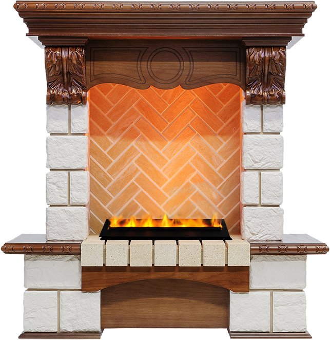 Камин можно использовать без какого-либо декоративного топлива, или дополнить его реалистичным муляжом дров с эффектом тлеющего дерева.