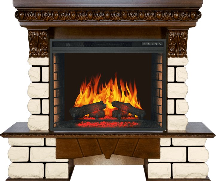 Пламя в очаге создается с помощью специальной технологии, а мерцающие дров со светодиодной подсветкой и звук потрескивания придают ему еще большей реалистичности.