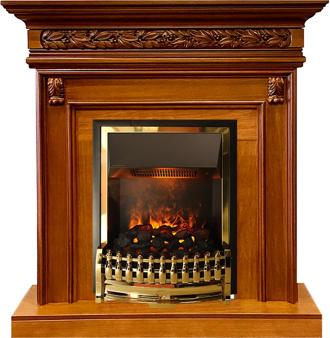 Электрический очаг Dimplex Atherton серии Opti-Myst с эффектом реального пламени. Этот стильный классический очаг в обрамлении золотого цвета предназначен для встраивания в порталы, выполненные в классическом стиле.