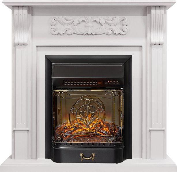 Схожесть с натуральным камином усиливается звуком потрескивающих дров и двухступенчатой системой обогрева. Управлять электрокамином можно с помощью пульта ДУ, который входит в комплект поставки.