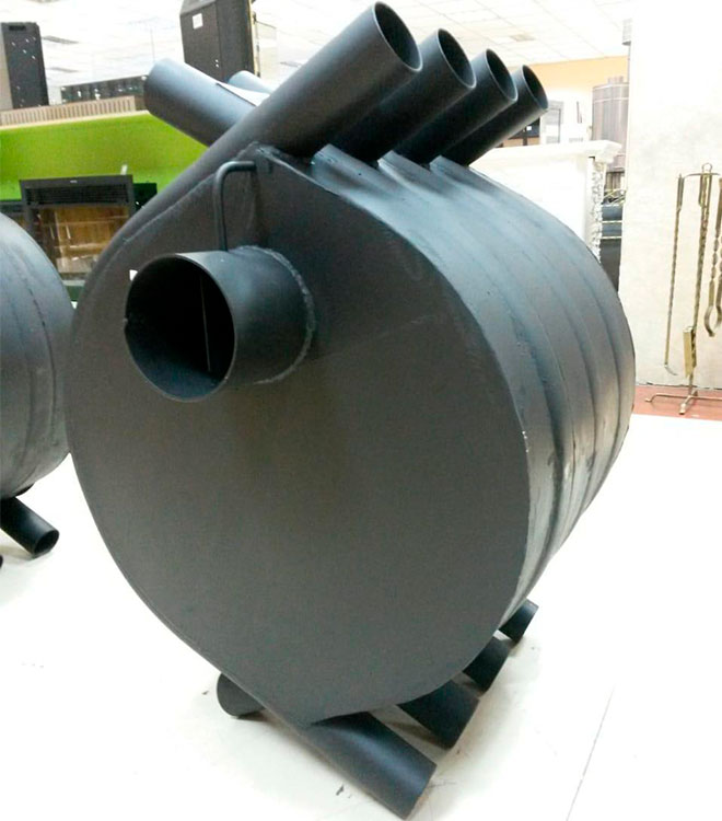 Печи типа Клондайк - Булерьян имеют возможность отапливать сразу несколько помещений. Для этого требуется одеть гофротрубу (такую же как для кухонных вытяжек) на любой из верхних патрубков и протянуть его в соседнее помещение или на другой этаж. Также можно обойтись без приобретения гофротруб, чтобы узнать как — звоните нам!