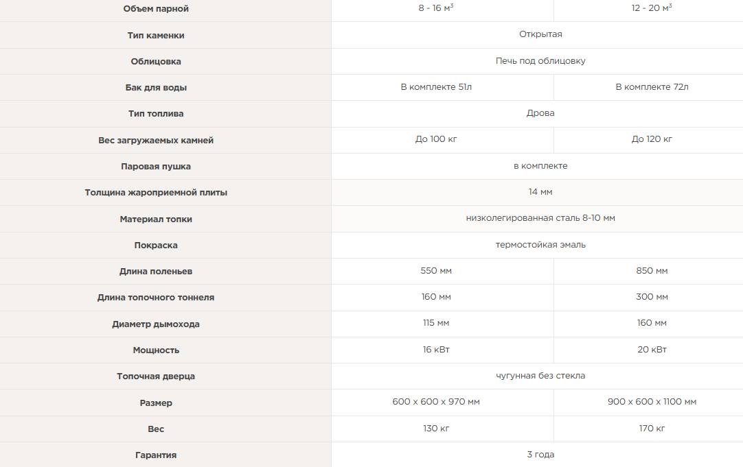 Объемная, не вентилируемая каменка позволяет получать большое количество пара, толстый металл топки и дымовых каналов обеспечит высокий ресурс печи (более 15 лет).