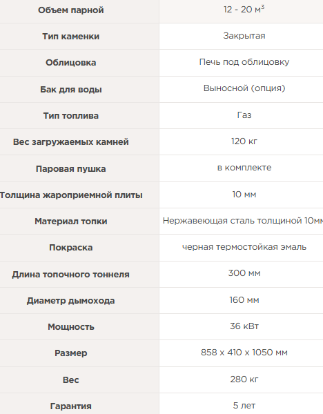 Отсутствие конвекционного потока в каменке - более горячие камни, и как следствие невидимый легкий пар. Подача воды в нижнюю раскаленную зону камней (температура нижней части камней более 500°С). Камни разогреваются с 4 сторон одновременно.