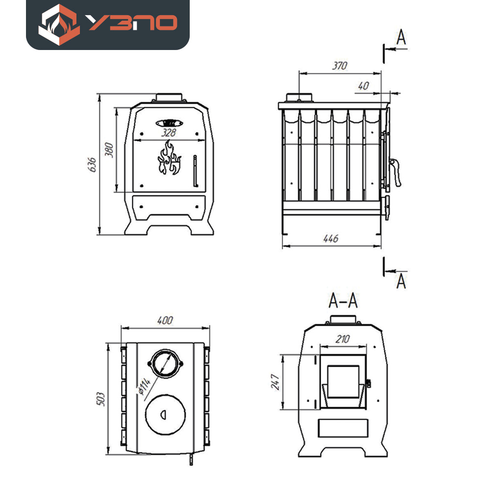 Топка оснащена сменным чугунным колосником, благодаря этому печь будет работать долгие годы.