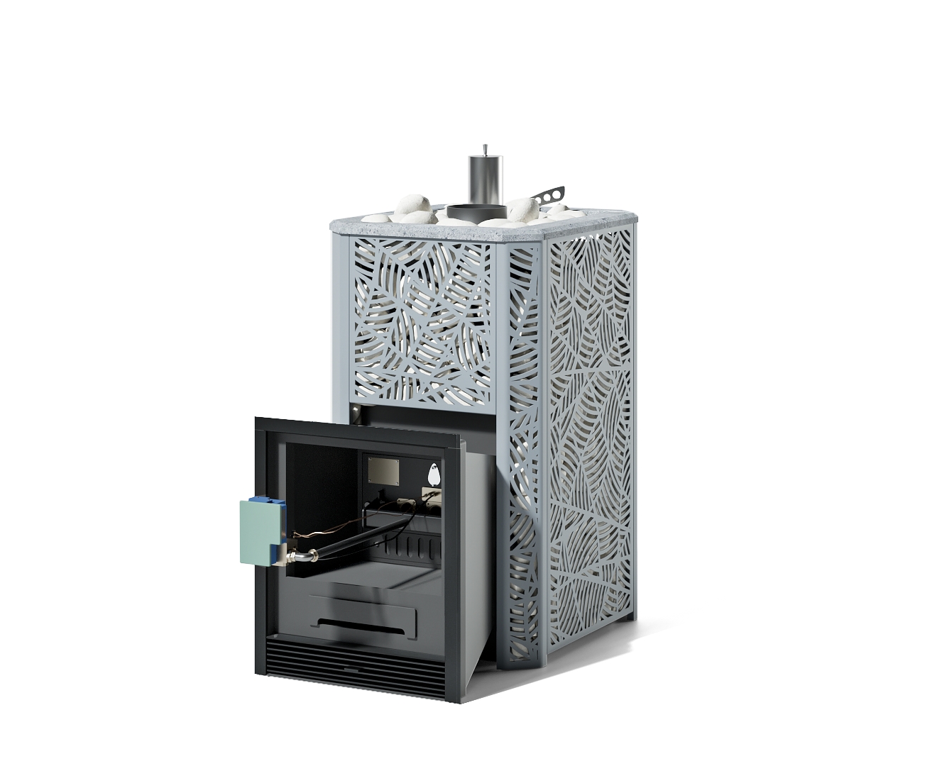 - Печь Ялта 15/2025 - Марка стали - AISI 321, Вид топлива - Подготовка под ГГУ, Варианты кожуха - Хохлома серый
