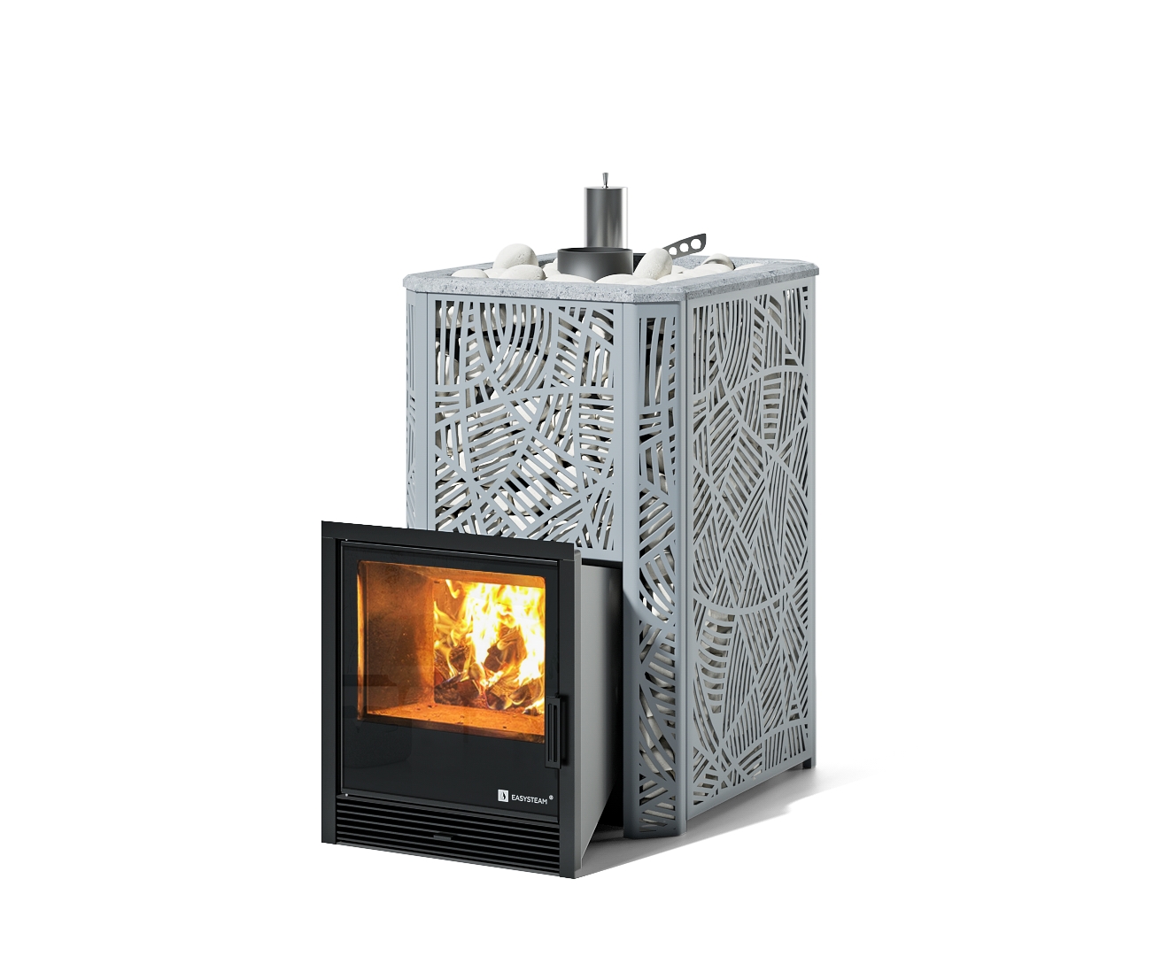 - Печь Ялта 15 К/2025 - Варианты кожуха - Модерн серый, Марка стали - AISI 430, Вид топлива - Дрова