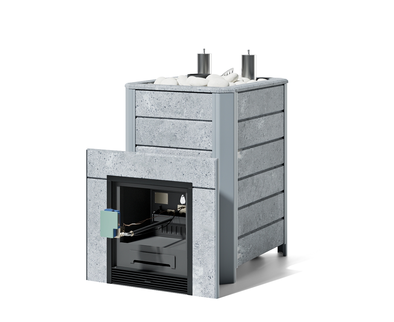 - Печь Ялта 35 К/2024 в облицовке из камня - Марка стали - AISI 321, Вид топлива - Газ, дрова Комплектация с ГГУ-40, Варианты кожуха - Талькохлорит